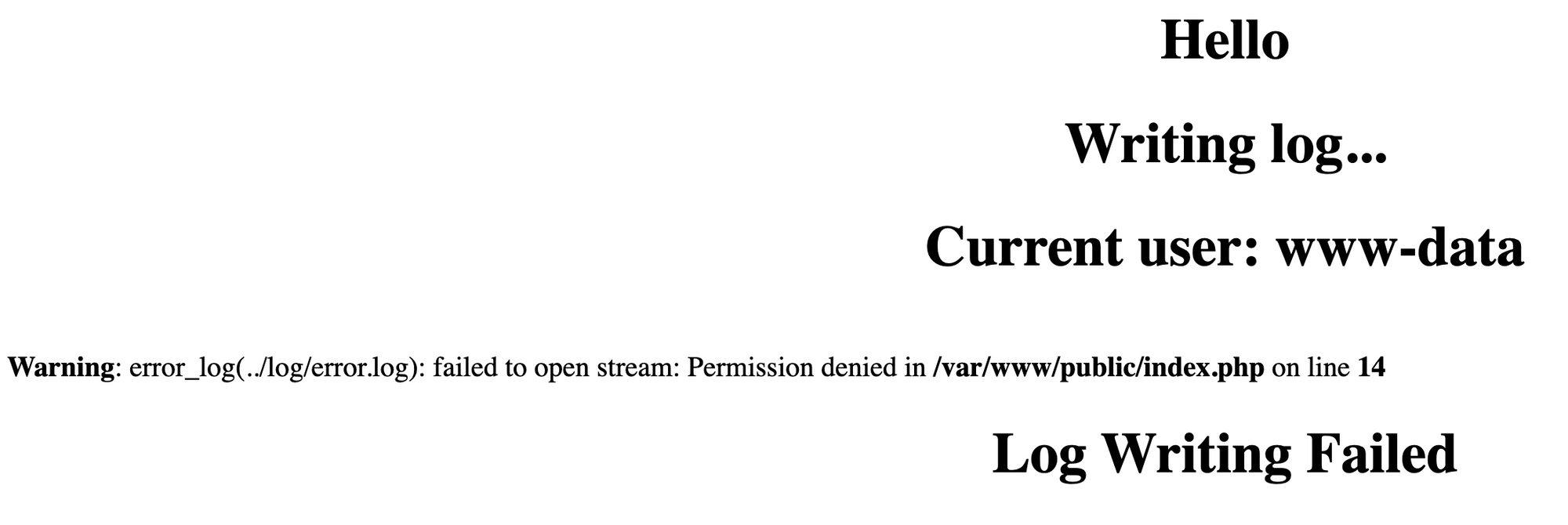 And if you look closely look at the webpage of "localhost:8000", it says "Current user: www-data", so the user now who is trying to write log is "www-data", but the file ownership belong to "ec2-user", that is why it fails.